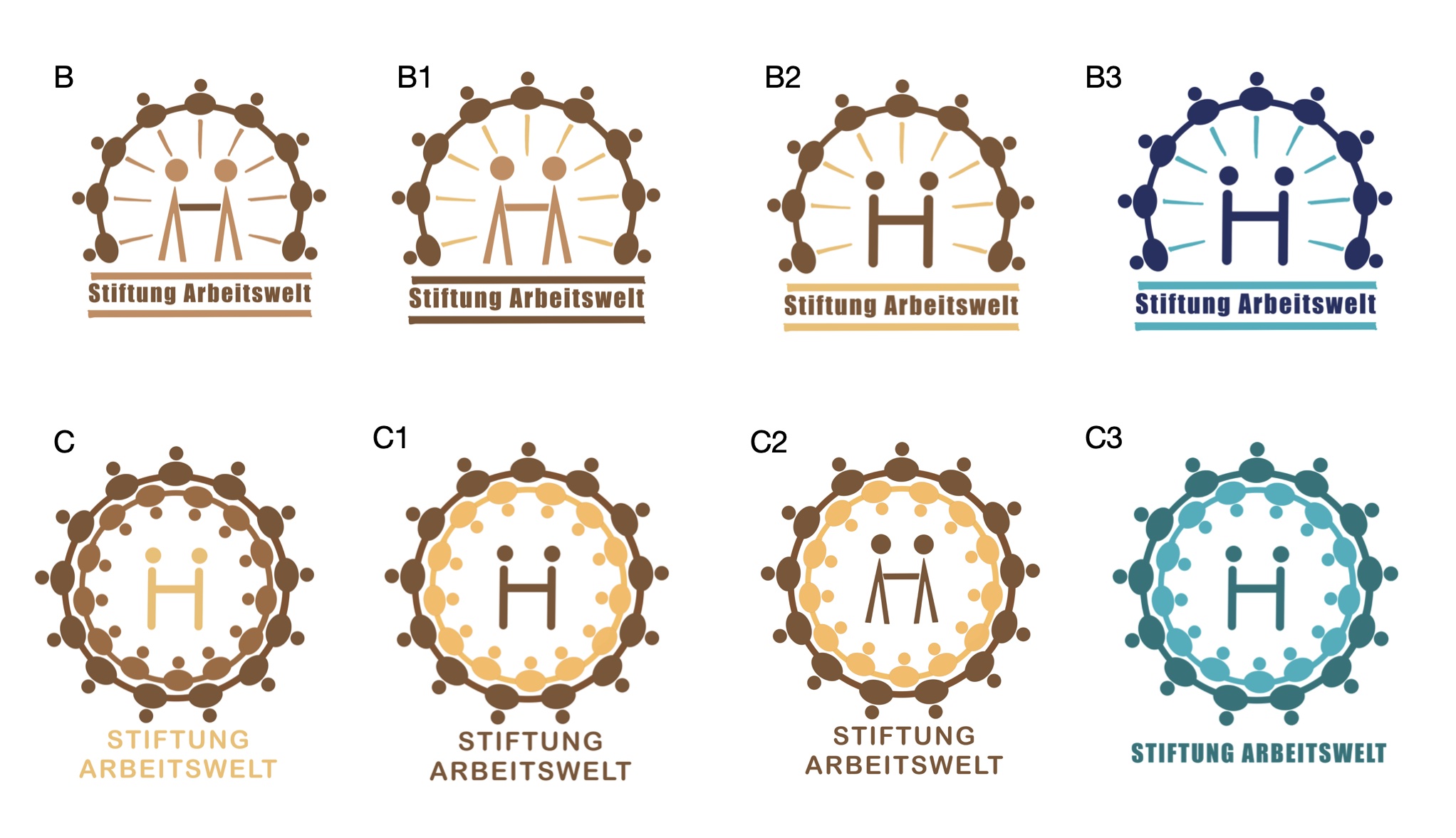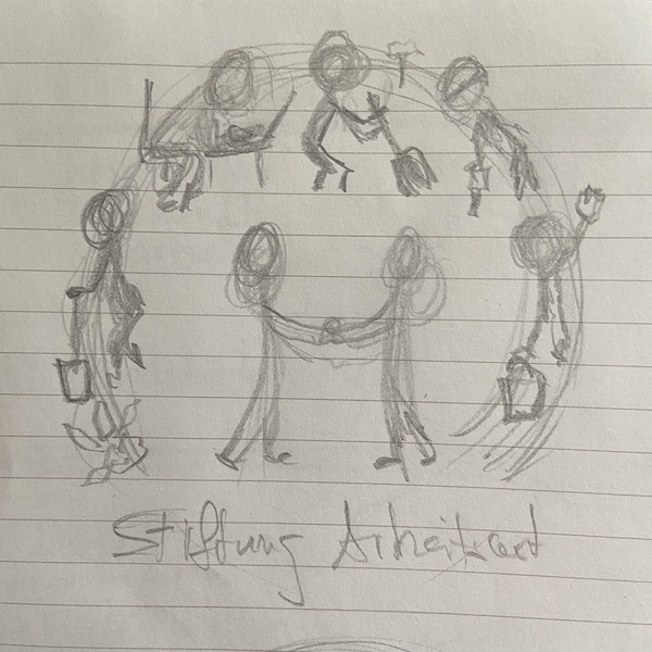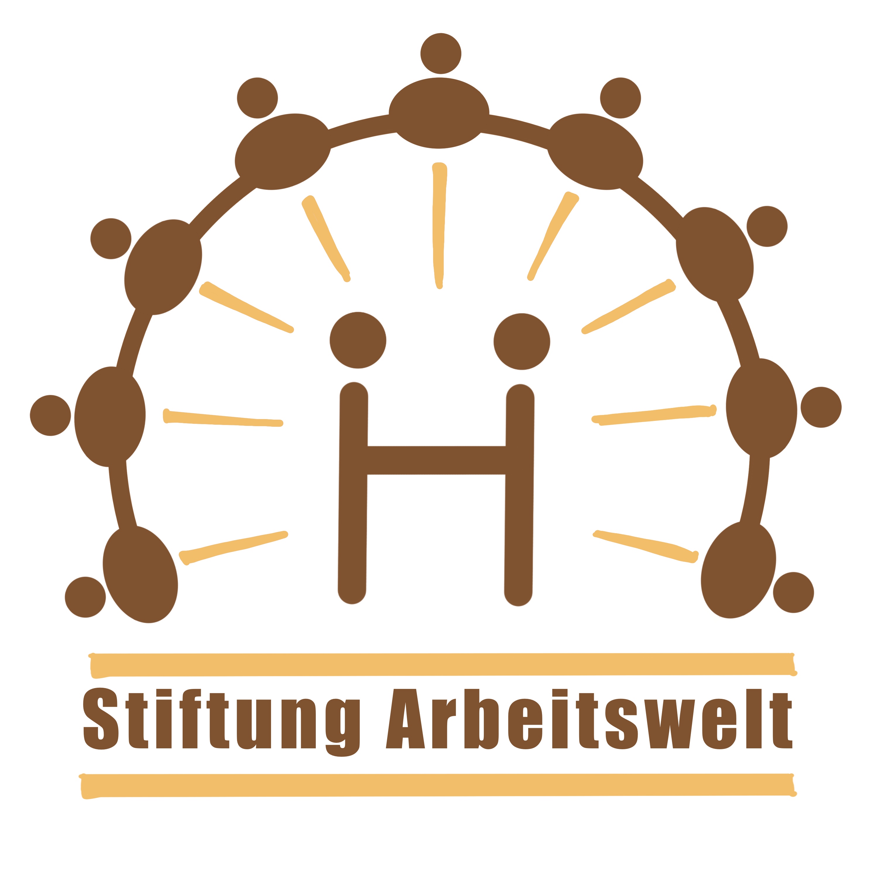 Ein wunderbarer Auftrag, für die neu gegründete Stiftung Arbeitswelt ein Logo und die Webseite zu erstellen! Als Vorgabe hatte ich ein gemaltes Bild der Gründerin, das als Inspiration dienen sollte. In der Mitte halten sich 2 Menschen die Hände und das sollte auch wie ein «H» aussehen, der Anfangsbuchstabe der Gründerin, Hildi Haas. Die Farben sollen erdig sein, Braun- und Beigetöne. Wie man unten sieht, habe ich erst Skizzen gemacht und einzelne dann ausgearbeitet.