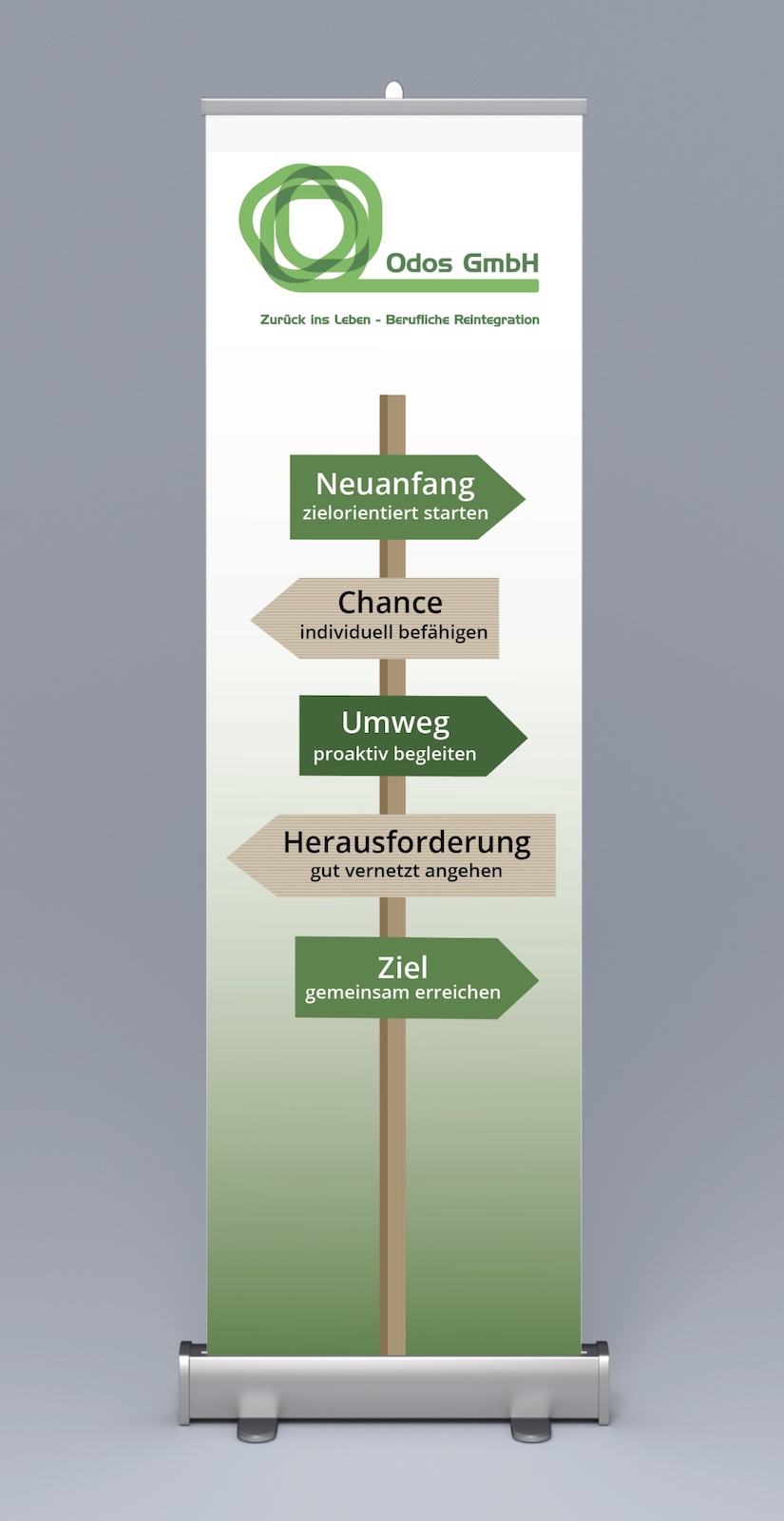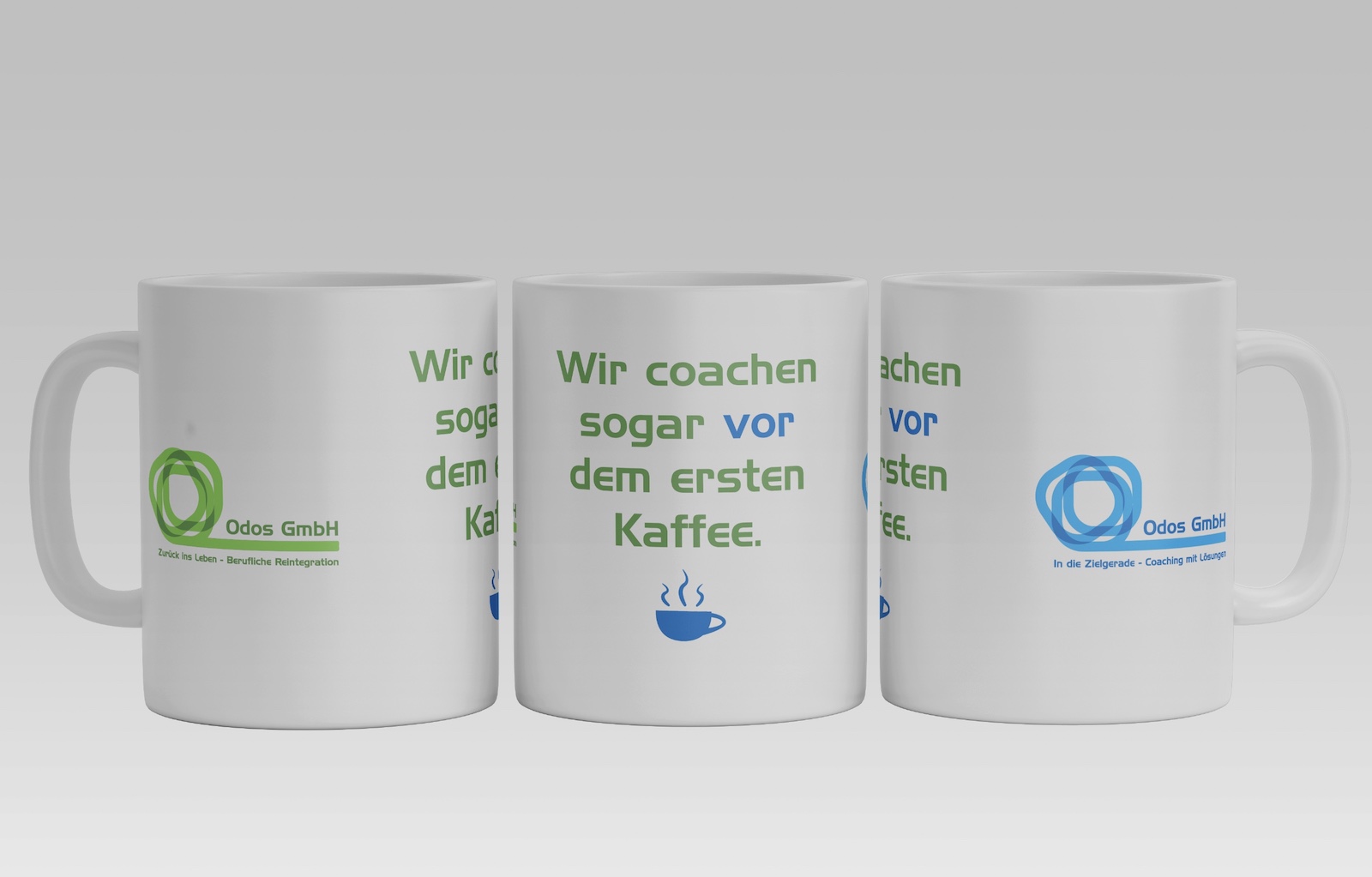 Für einen Messeauftritt fragte mich die Firma Odos GmbH an, ob ihr für sie diverse Druckvorlagen erstellen könnte. Sie brauchen Tassen, Flyer, Visitenkarten und ein Rollup-Banner. Na klar konnte ich.